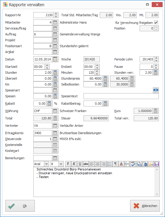 - Verwaltung von Spesen und Positionsarten (inkl. Stundensätze, Kontierung, Margen)